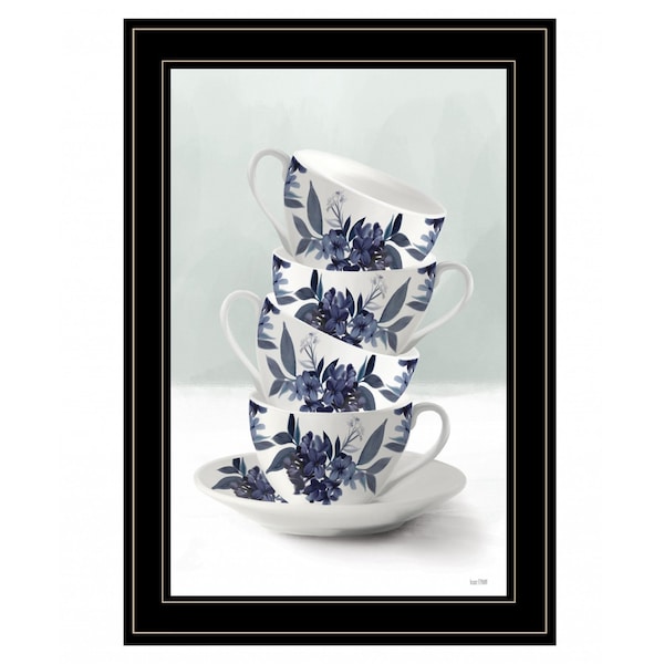 Bring some sizzle to your space with this eye-catching tea tower blue 3 black framed print kitchen wall art. This print is a visual artistic expression that allows you to decorate your space in style. Reproduced for you on wood, this hanging decorative accent will be a trendy and fashionable way to dress your walls in a rustic and modern farmhouse vibe. Hang on your wall to add some up to date fashion and decoration. Utilize this opportunity to create a focal point in the room with this fabulous wall decor option. 21-inch H x 15-inch W x 1-inch D