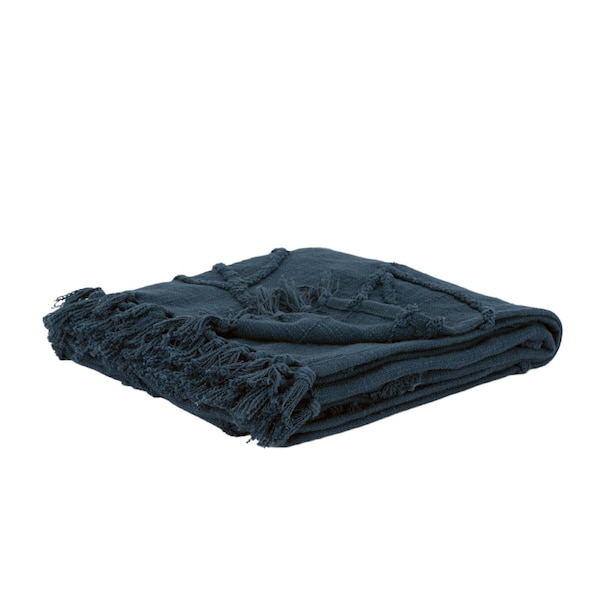 This teal blue woven 100% woven textured cotton throw blanket is a stylish addition to any sofa. Features a woven floral design that offers sumptuous softness and texture that you'll cherish for years to come. Made from 100% woven textured cotton this blanket will make a great addition to any room it's added to. Layering your furnishings with a decorative throw has the ability to awaken a tired living room or elevate the design of your bedroom simply by providing elements of color and texture that weren't there before. This cozy throw blanket is sure to become your go-to couch companion. 50-inch H x 50-inch W x 0.5-inch D