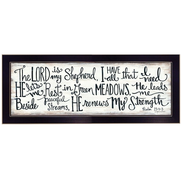 Unique and decorative, this the lord is my shepherd 1 black framed print wall art will leave a lasting impression. This print is a visual artistic expression that allows you to decorate your space in style. Reproduced for you on paper, this hanging decorative accent will be a trendy and fashionable way to dress your walls. Adding this hanging wall art to your space to make your room feel more finished and attractive. Instantly liven up your space with this art that brings color and dimension to your walls. 8-inch H x 20-inch W x 1-inch D