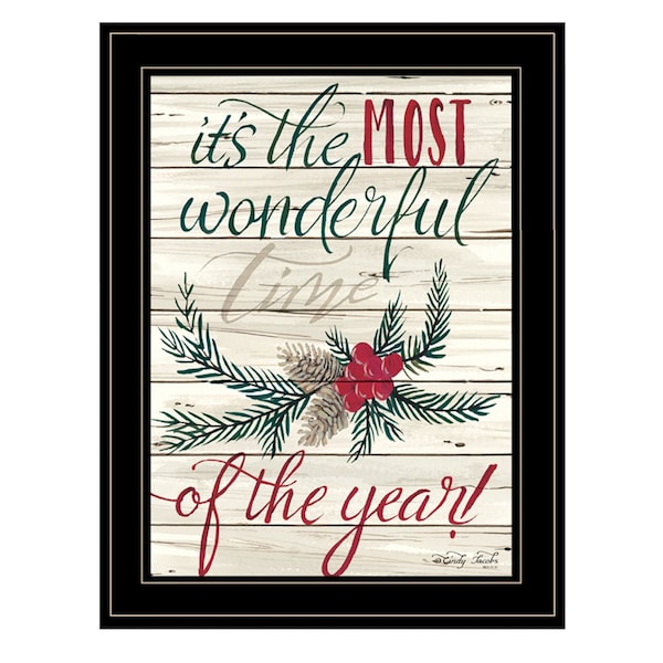 Unique and decorative, this the most wonderful time 2 black framed print wall art will leave a lasting impression. This print is a visual artistic expression that allows you to decorate your space in style. Reproduced for you on paper, this hanging decorative accent will be a trendy and fashionable way to dress your walls. Hang on your wall to add some up to date fashion and decoration. Instantly liven up your space with this art that brings color and dimension to your walls. 19-inch H x 15-inch W x 1-inch D