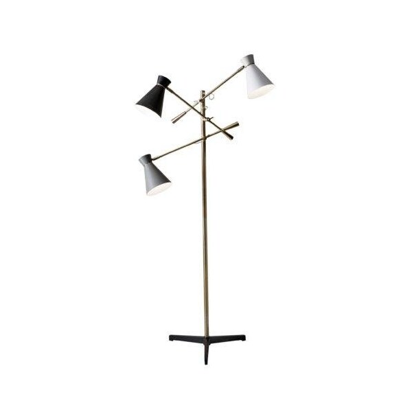 Three Arm Adjustable Floor Lamp in Brass Metal with Grey, Black & White Shades