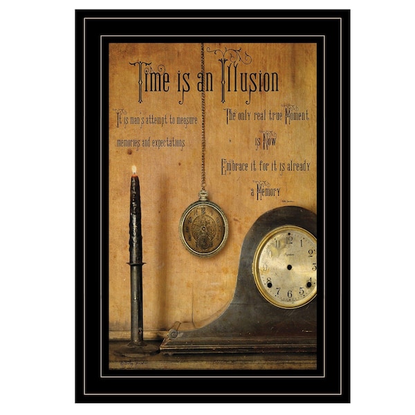 The time is an illusion 2 black framed print wall art is the perfect decorative accessory for your home. This print is a visual artistic expression that allows you to decorate your space in style. Reproduced for you on paper, this hanging decorative accent will be a trendy and fashionable way to dress your walls. Hang on your wall to add some up to date fashion and decoration. Utilize this opportunity to create a focal point in the room with this fabulous wall decor option. 15 inches H x 11 inches W x 1 inches D