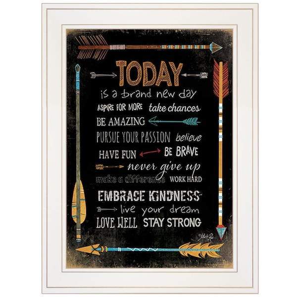 Add an air of fashion to your room and rejuvenate the space with this today is a brand new day 1 white framed print wall art. This print is a visual artistic expression that allows you to decorate your space in style. Reproduced for you on paper, this hanging decorative accent will be a trendy and fashionable way to dress your walls. Hang on your wall to add some up to date fashion and decoration. Instantly liven up your space with this art that brings color and dimension to your walls. 27-inch H x 21-inch W x 1-inch D