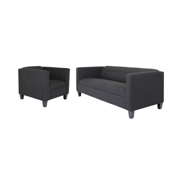 When it comes to indoor seating, this two piece indoor black four person seating set has everything you need to get set and ready to relax. Create a welcoming and inviting ambiance with a seating set featuring polyester that combine resilience, comfort, and timeless elegance, making every seating experience a delight. The beautiful solid color pattern will breathe life and character into your space creating a space that is authentically you. The tufting technique adds depth and dimension to the cushions, creating a visually interesting and inviting seating surface. Nailhead trim adds a decorative and stylish touch. Gather with family and loved ones with this seating set that will bring you all together. 28-inch H x 80-inch W x 33-inch D