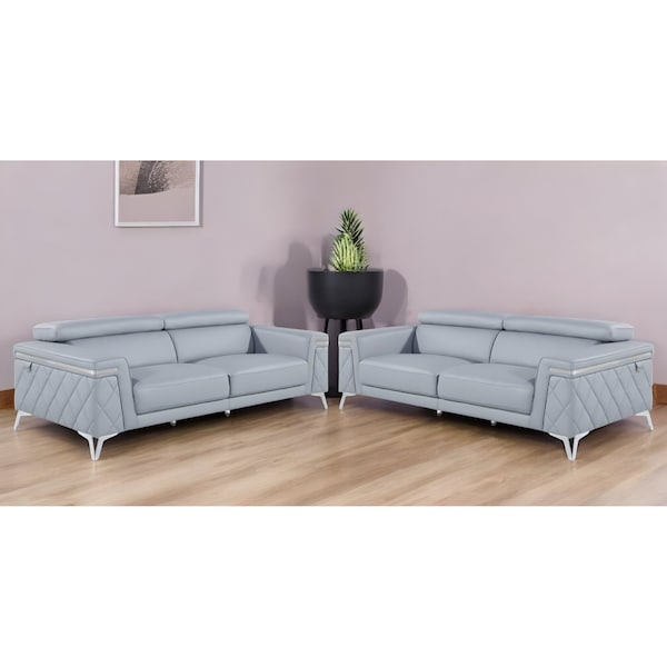 Crafted with solid wood frame, this elegant seating set in a calming blue hue comfortably accommodates four people, perfect for creating a cozy corner in your living space. The upholstery in matching blue tones adds a touch of sophistication, enhancing the overall aesthetic appeal. With two well-crafted pieces included, this set is designed to provide both style and functionality, making it an ideal choice for those seeking a harmonious blend of design and comfort. 42-inch H x 89-inch W x 38-inch D