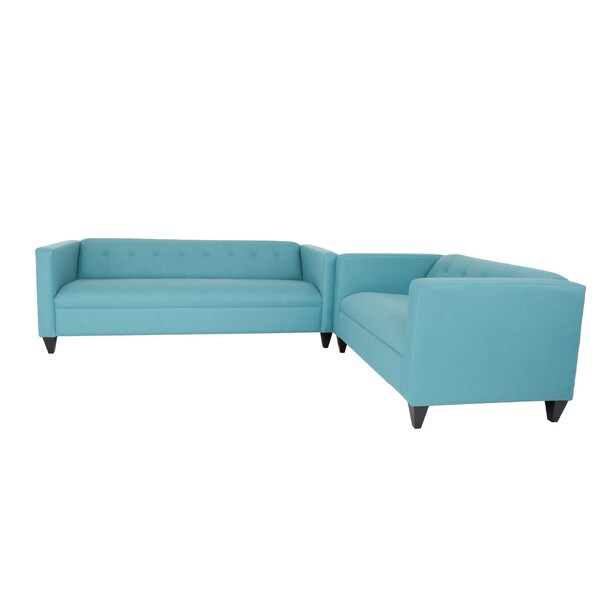 Step into a world of unparalleled seating comfort with our remarkable two piece teal blue polyester blend seating set. Upholstered with a vibrant aqua / teal blue polyester blend that is designed to look good and last, this sofa and loveseat set will be a striking modern addition to your room. The inclusion of a loveseat into your mix allows a fashionable seating option in a compact design. 28-inch H x 80-inch W x 34-inch D