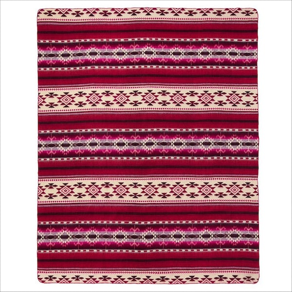 This Ultra-Soft Red Southwest Handmade Throw Blanket features in shades of cream navy blue and pink that is a pretty palette that gives a happy vibe and would be great for almost any room but especially complements rooms with Southwestern and Native American decor. Generous in size this queen sized blanket is so versatile to be used on a bed, as an accent on your couch, as a hanging wall tapestry, and of course as a beach or picnic blanket. It is not only super soft but made with hypo-allergenic materials and is lightweight for year-round versatility. Enjoy all life has to offer with this cool patterned cozy blanket. 93-inch h x 82-inch w x 0.01-inch d.