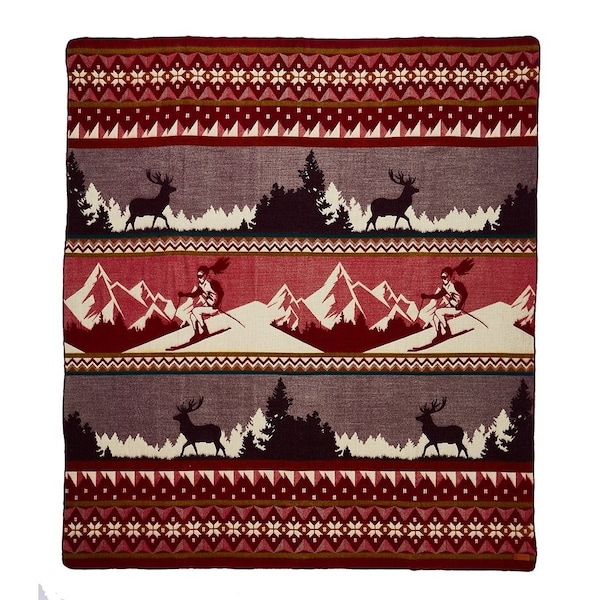 Ultra Soft Red Ski Mountain Handmade Queen Size Woven Blanket