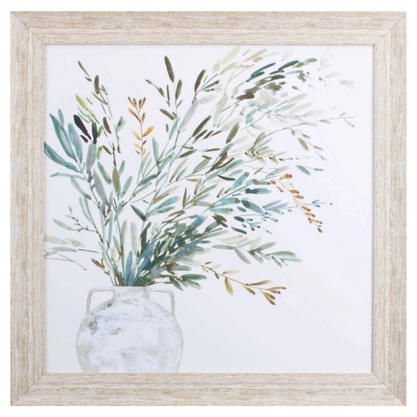 This vase of grass i white framed print wall art will add a beautiful decorative accent to your decor. This print is a visual artistic expression that allows you to decorate your space in style. This block print is a way to express your artistic style and add some fashion to your walls. Reproduced for you on paper, this hanging decorative accent will be a trendy and fashionable way to dress your walls. Hang on your wall to add some up to date fashion and decoration. Utilize this opportunity to create a focal point in the room with this fabulous wall decor option. 28-inch H x 28-inch W x 1-inch D