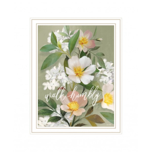 This walk humbly floral 2 white framed print wall art will add a beautiful decorative accent to your decor. This print is a visual artistic expression that allows you to decorate your space in style. Reproduced for you on wood, this hanging decorative accent will be a trendy and fashionable way to dress your walls in a rustic and modern farmhouse vibe. Adding this hanging wall art to your space to make your room feel more finished and attractive. Utilize this opportunity to create a focal point in the room with this fabulous wall decor option. 18-inch H x 14-inch W x 1-inch D
