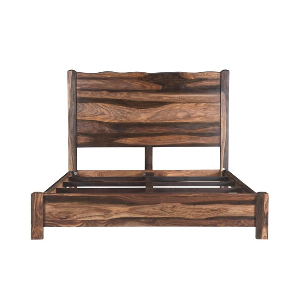 Create a haven for relaxation and sweet dreams with this fabulous walnut live edge solid wood king bed frame. Quality craftsmanship in every facet of production ensures durability and long-lasting wear. This bed will help to create a peaceful environment that will provide restful slumber for years to come. 63-inch h x 80-inch w x 86.5-inch d.