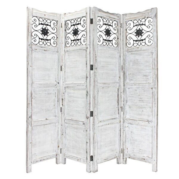 Wash 4 Panel with Scroll Work Room Divider Screen, Gray