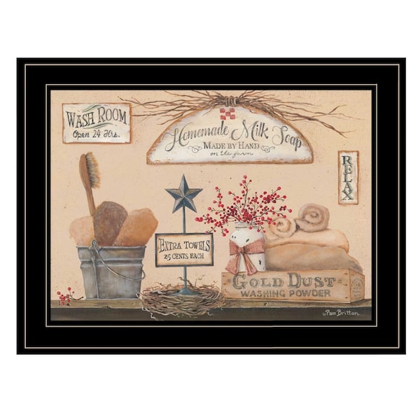 This wash room 3 black framed print bathroom wall art will add a beautiful decorative accent to your decor. This print is a visual artistic expression that allows you to decorate your space in style. Reproduced for you on paper, this hanging decorative accent will be a trendy and fashionable way to dress your walls. Adding this hanging wall art to your space to make your room feel more finished and attractive. Utilize this opportunity to create a focal point in the room with this fabulous wall decor option. 15-inch H x 19-inch W x 1-inch D
