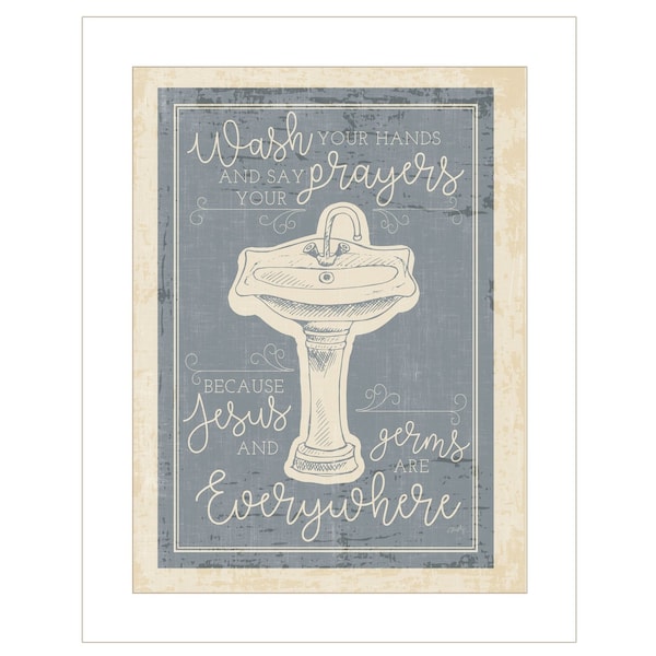 Add an air of fashion to your room and rejuvenate the space with this wash your hands 5 white framed print bathroom wall art. This print is a visual artistic expression that allows you to decorate your space in style. Reproduced for you on paper, this hanging decorative accent will be a trendy and fashionable way to dress your walls. Hang on your wall to add some up to date fashion and decoration. Instantly liven up your space with this art that brings color and dimension to your walls. 19-inch H x 15-inch W x 1-inch D