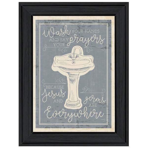 Add an air of fashion to your room and rejuvenate the space with this wash your hands 7 black framed print bathroom wall art. This print is a visual artistic expression that allows you to decorate your space in style. Reproduced for you on paper, this hanging decorative accent will be a trendy and fashionable way to dress your walls. Hang on your wall to add some up to date fashion and decoration. Utilize this opportunity to create a focal point in the room with this fabulous wall decor option. 19-inch H x 15-inch W x 1-inch D