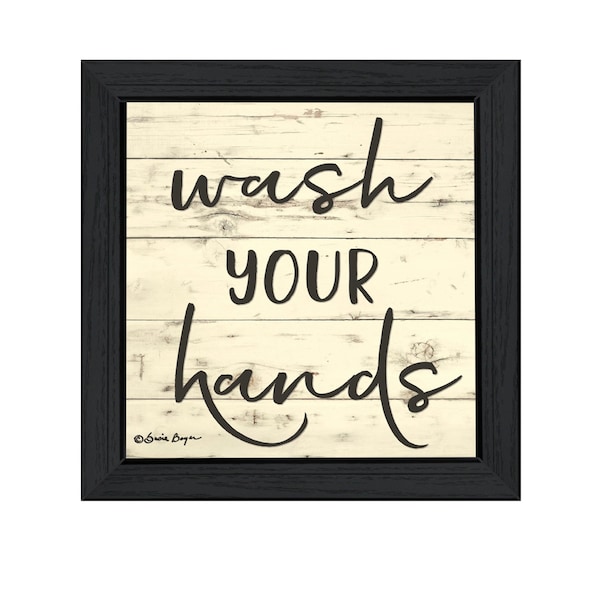 Bring some sizzle to your space with this eye-catching wash your hands black framed print bathroom wall art. This print is a visual artistic expression that allows you to decorate your space in style. Reproduced for you on wood, this hanging decorative accent will be a trendy and fashionable way to dress your walls in a rustic and modern farmhouse vibe. Adding this hanging wall art to your space to make your room feel more finished and attractive. Utilize this opportunity to create a focal point in the room with this fabulous wall decor option. 15-inch H x 15-inch W x 1-inch D