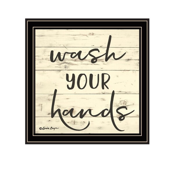 This wash your hands black framed print bathroom wall art will add a beautiful decorative accent to your decor. This print is a visual artistic expression that allows you to decorate your space in style. Reproduced for you on wood, this hanging decorative accent will be a trendy and fashionable way to dress your walls in a rustic and modern farmhouse vibe. Adding this hanging wall art to your space to make your room feel more finished and attractive. Instantly liven up your space with this art that brings color and dimension to your walls. 14-inch H x 14-inch W x 1-inch D