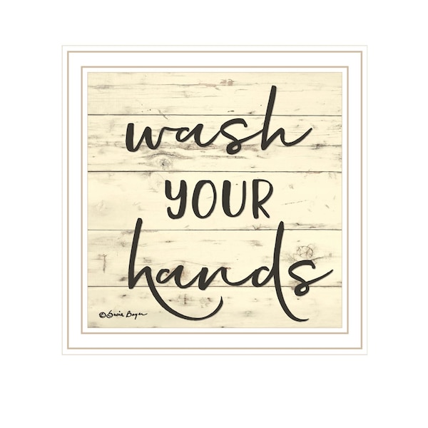 This wash your hands white framed print bathroom wall art will add a beautiful decorative accent to your decor. This print is a visual artistic expression that allows you to decorate your space in style. Reproduced for you on wood, this hanging decorative accent will be a trendy and fashionable way to dress your walls in a rustic and modern farmhouse vibe. Adding this hanging wall art to your space to make your room feel more finished and attractive. Instantly liven up your space with this art that brings color and dimension to your walls. 14-inch H x 14-inch W x 1-inch D