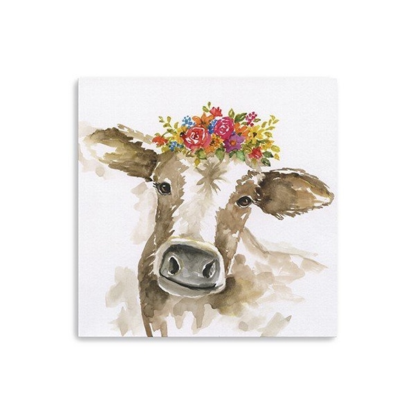 Bring some sizzle to your space with this eye-catching watercolor floral cow unframed print wall art. This print is a visual artistic expression that allows you to decorate your space in style. Reproduced for you on canvas, this hanging decorative accent will be a trendy and fashionable way to dress your walls. Adding this hanging wall art to your space to make your room feel more finished and attractive. Utilize this opportunity to create a focal point in the room with this fabulous wall decor option. 30 inches H x 30 inches W x 1.25 inches D