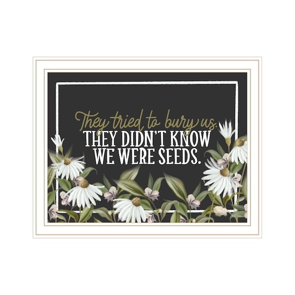 Bring some sizzle to your space with this eye-catching we were seeds white framed print wall art. This print is a visual artistic expression that allows you to decorate your space in style. Reproduced for you on wood, this hanging decorative accent will be a trendy and fashionable way to dress your walls in a rustic and modern farmhouse vibe. Adding this hanging wall art to your space to make your room feel more finished and attractive. Utilize this opportunity to create a focal point in the room with this fabulous wall decor option. 14-inch H x 18-inch W x 1-inch D