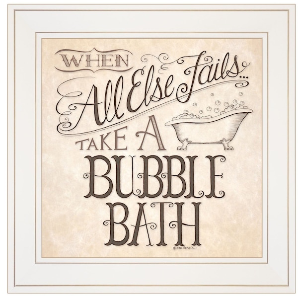 Add an air of fashion to your room and rejuvenate the space with this when all else fails 2 white framed print bathroom wall art. This print is a visual artistic expression that allows you to decorate your space in style. Reproduced for you on paper, this hanging decorative accent will be a trendy and fashionable way to dress your walls. Adding this hanging wall art to your space to make your room feel more finished and attractive. Utilize this opportunity to create a focal point in the room with this fabulous wall decor option. 15-inch H x 15-inch W x 1-inch D