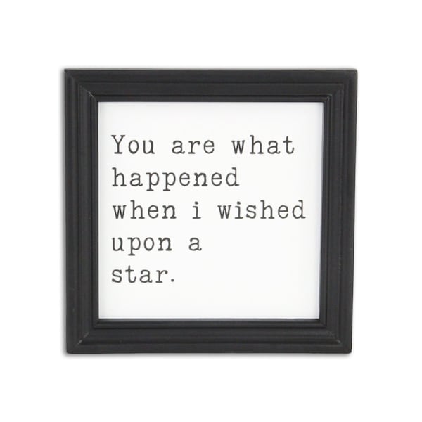 Bring some sweet sentiments to your space with this charming black and white when i wished upon a star black and white framed print wall art. This typography art is reproduced for you on wood and will be a trendy and fashionable way to dress your walls in a rustic modern farmhouse vibe. Adding this hanging wall art to your space to make your room feel more finished and attractive. 9.5-inch H x 9.5-inch W x 0.5-inch D