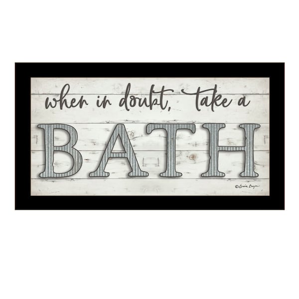 Bring some sizzle to your space with this eye-catching when in doubt take a bath black framed print bathroom wall art. This print is a visual artistic expression that allows you to decorate your space in style. Reproduced for you on paper, this hanging decorative accent will be a trendy and fashionable way to dress your walls. Adding this hanging wall art to your space to make your room feel more finished and attractive. Instantly liven up your space with this art that brings color and dimension to your walls. 11-inch H x 20-inch W x 1-inch D