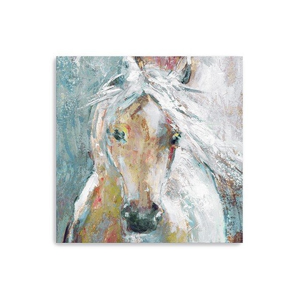 Unique and decorative, this whimsical horse unframed print wall art will leave a lasting impression. This print is a visual artistic expression that allows you to decorate your space in style. Reproduced for you on canvas, this hanging decorative accent will be a trendy and fashionable way to dress your walls. Adding this hanging wall art to your space to make your room feel more finished and attractive. Instantly liven up your space with this art that brings color and dimension to your walls. 20 inches H x 20 inches W x 1.25 inches D