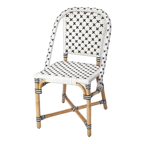 Experience the perfect blend of form and function with the white and brown faux rattan dining chair, designed to withstand the elements while providing exceptional comfort and timeless design. Let the captivating brown color serve as an artistic expression, leaving a lasting impression that embodies your individuality. Enjoy the good life everyday with this fashionable outdoor seating option. 35.5" H x 21" W x 22" D