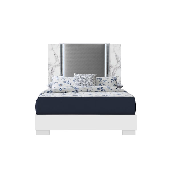 White and Gray Wood And Faux Leather Lighted King Bed Frame