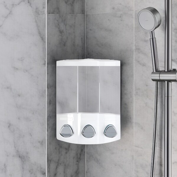 Add this aesthetically pleasing white heavy duty plastic three chamber wall mount soap dispenser to your bathtub, shower, or sink area for a good looking and practical dispensing solution. Help to alleviate clutter and give your space a clean and cohesive look and feel. Holds a total capacity of 44.1 ounces spread between 3 individual compartments. Dispenses just the right amount of liquid each time, making this a potential money-saver as it cuts down on waste and allows you to buy bulk sized refill bottles of your product that are not only typically more cost effective, but are eco-friendly as well. 8.75-inch H x 7-inch W x 3.75-inch D