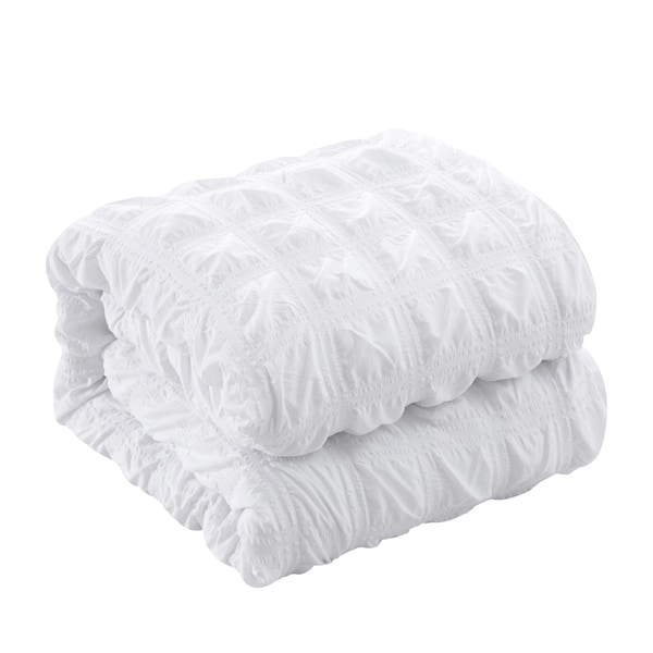 Similar to a pillowcase, this white king polyester 180 thread count washable duvet cover set is intended to encase your duvet or comforter for added protection. With sturdy construction from polyester, the covering is designed to be soft and long lasting. As a bonus, this bedding fits the best of both worlds. It was expertly designed to stay warm in the winter but cool in the summer. King sizing is perfect for the primary bedroom. Features premier stitching construction that was expertly designed to make the bedding thick and fluffy. This duvet cover is the perfect accessory for anyone who is in need of a great night's sleep. Style, durability, and comfort combine so you can rest easy knowing that you're covered duvet cover. 104-inch H x 90-inch W x 0.5-inch D