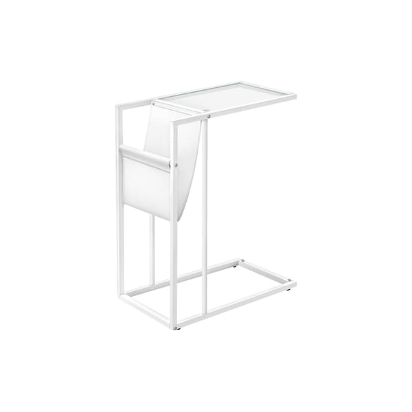 Display your sense of practical fashion with this charming White Modern Metal and Glass TV Table. It has a lovely design that will definitely breathe some fresh air into your interior. Not to mention how obviously well-made it is. This marvelous accent table is expertly crafted from metal and tempered glass. Ideal to fit over the couch to eat or work on your laptop. 24" X 19.5" x 12"