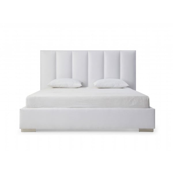 Update and anchor your room in style with the fabulous white ribbed texture velvet upholstered queen bed frame. Fully upholstered in a white rugged velvet, this bed brings a unique and designer perspective to your space. Quality craftsmanship in every facet of production ensures durability and long-lasting wear. This bed will help to create a peaceful environment that will provide restful slumber for years to come. Features high quality design that adds a contemporary vibe to your space. Contemporary styling gives this bed a clean and fresh style. 55-inch h x 72-inch w x 87-inch d.