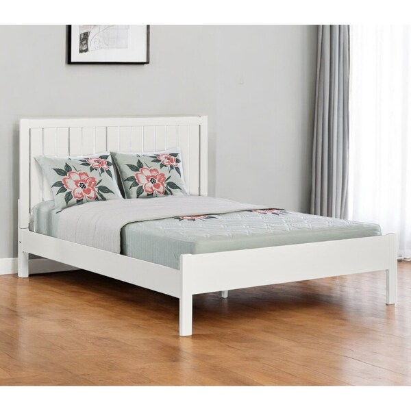 Update and anchor your room in style with the fabulous white solid wood king bed frame. This stylish platform bed features a ship lap style panel headboard. Quality craftsmanship in every facet of production ensures durability and long-lasting wear. This bed is the perfect way to make your bedroom comfortable and inviting. Features high quality design that adds a modern vibe to your space. Modern styling gives this bed a clean and fresh style. 43.3-inch h x 83.5-inch w x 78.3-inch d.