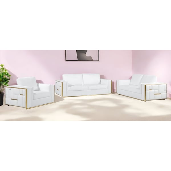 When it comes to indoor seating, this white top grain leather five person seating set has everything you need to get set and ready to relax. Discover seating sets crafted with top grain leather that prioritize both comfort and durability, allowing you to relax and unwind in style without compromising on quality. Web suspension seat construction provides optimal support and cushioning, offering a comfortable seating experience by evenly distributing weight and reducing pressure points. Chock full of value, this set has it all. 40-inch H x 89-inch W x 34-inch D