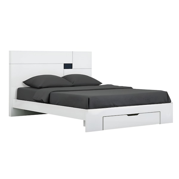 White Wood CA King Platform Bed Frame With Storage Drawer