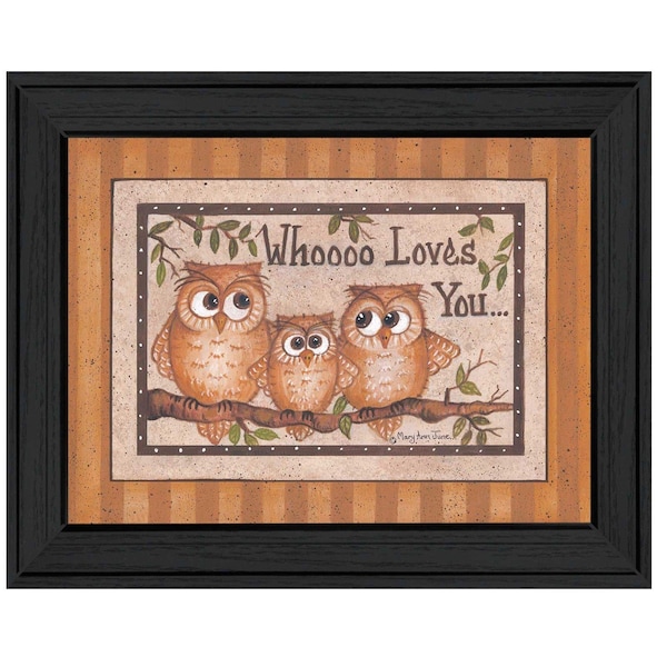 Bring some sizzle to your space with this eye-catching whoooo loves you black framed print wall art. Add a sense of the woods, mountain or lodge lifestyle to your walls with this outdoorsy owl wall art. This print is a visual artistic expression that allows you to decorate your space in style. Reproduced for you on paper, this hanging decorative accent will be a trendy and fashionable way to dress your walls. Adding this hanging wall art to your space to make your room feel more finished and attractive. Instantly liven up your space with this art that brings color and dimension to your walls. 14-inch H x 18-inch W x 1-inch D