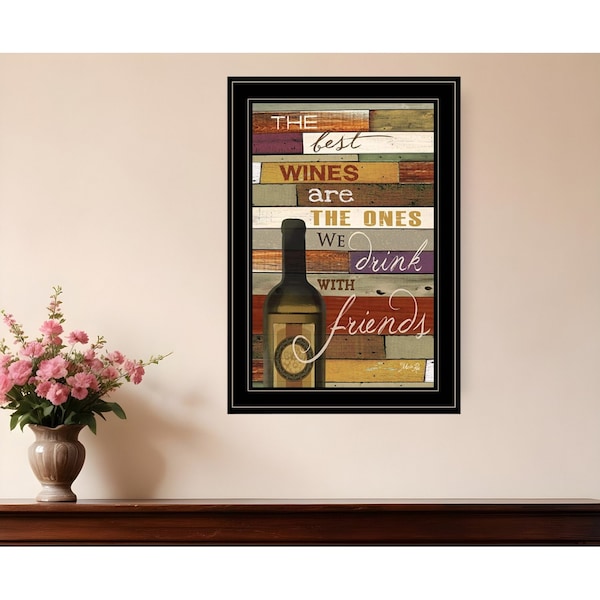 Unique and decorative, this wine with friends black framed print wall art will leave a lasting impression. This print is a visual artistic expression that allows you to decorate your space in style. Reproduced for you on paper, this hanging decorative accent will be a trendy and fashionable way to dress your walls. Hang on your wall to add some up to date fashion and decoration. Instantly liven up your space with this art that brings color and dimension to your walls. 21 inches H x 15 inches W x 1 inches D