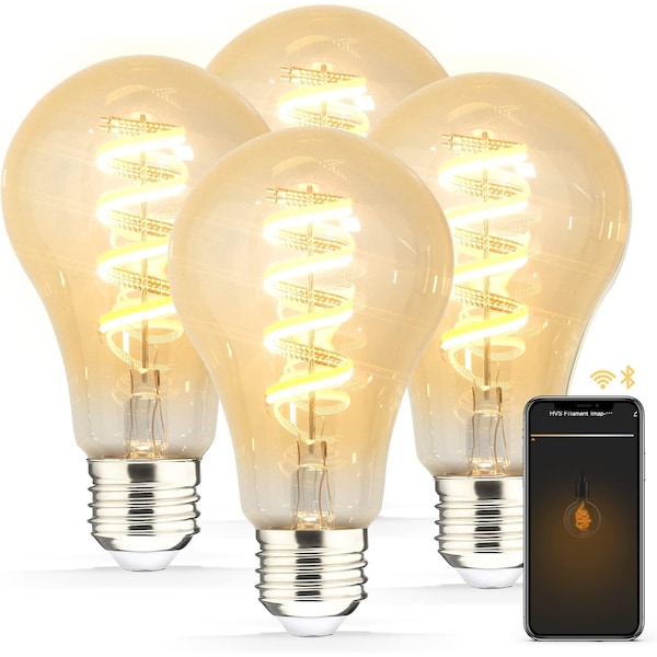 HVS Smart Amber Edison Bulbs blend vintage charm with modern convenience, featuring a tunable white spectrum from 2100K to 5000K and fully dimmable brightness (1%–100%) for customizable lighting at any time. Designed with high-quality vitreous materials and a warm amber finish, the double spiral filament offers a retro mid-century look while ensuring long-term durability with over-temperature protection. Whether you need cozy mood lighting for evenings or crisp functional lighting for work, these bulbs adjust seamlessly to your daily rhythm. Compatible with Alexa and Google Assistant, HVS smart bulbs connect easily via the HVS App on 2.4GHz Wi-Fi for hands-free voice control or remote access. The intuitive app lets you group bulbs, preserve settings during power outages, and switch between Sleep, Reading, Work, and Leisure modes with a single tap. Automate lighting based on time or weather, set schedules and timers, and create a smart home experience that works for youall with the warm glow of classic design and intelligent performance.
