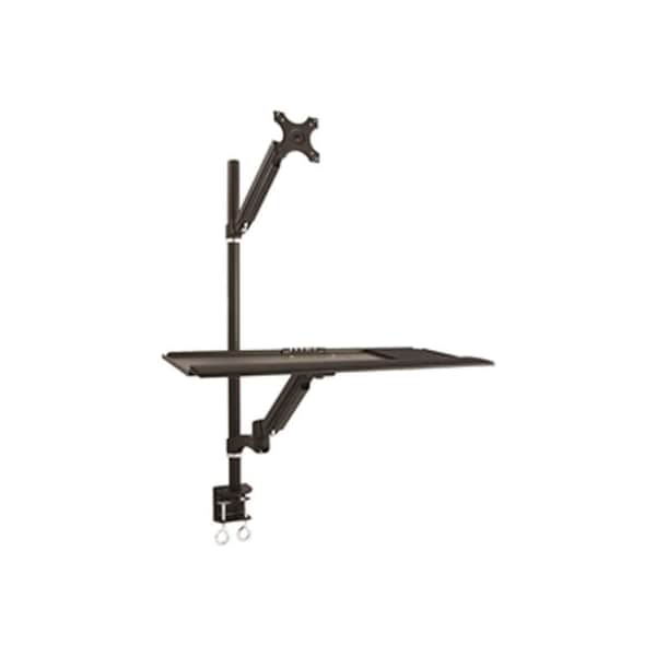 Tygerclaw tyds10019blk single monitor sit-stand workstation tygerclaw tyds10019blk combining durable design with a sleek appearance, mount-it single monitor articulating arm is designed to maximize your viewing comfort and improve your productivity with its full-motion capabilities such as height adjustment, tilt, swivel, pivot and rotate features. By raising your monitor off of the desktop, the mounting arm increases valuable surface space. Placing the monitor at a comfortable and ergonomic height helps reduce shoulder, neck and eye strain. Ideal of home or office use. features: holds most 13 in. To 27 in. Monitors up to 22 lb. universal mounting pattern up to vesa 100 mm x 100 mm tilt degree from -90 to +90 swivel degree up to 360 built in cable management mounts to the back of your desk via a heavy-duty c-clamp solid heavy-gauge cold steel construction all necessary mounting hardware is included tested and guaranteed: full 1-year warranty