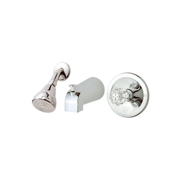 HomePointe, Basic Chrome Finish, Single Acrylic Handle Combination Tub Shower Faucet, Stainless Steel Washerless Ball Design, Brass Waterway, Chrome Showerhead 18 GPM , 12 Threaded Inlets, For Replacement Stainless Steel Ball Use TV 133810