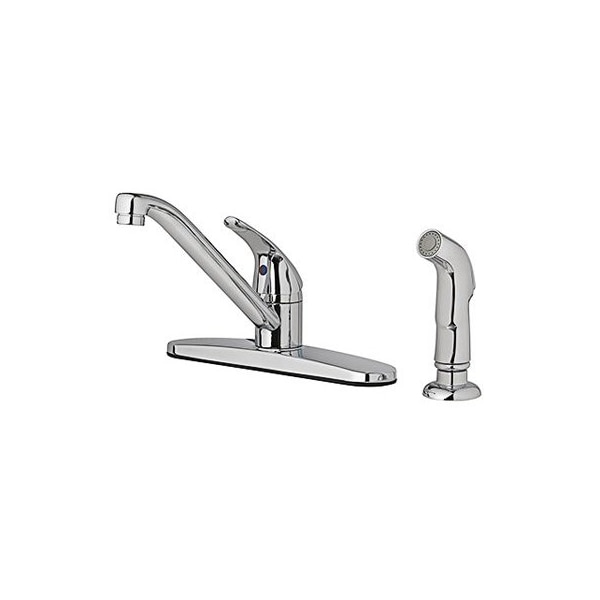 HomePointe, Chrome Finish, Single Lever Handle Kitchen Faucet, With Chrome Spray, 18 GPM, 4 Hole Installation, Brass Waterways, Metal Housing, Stainless Steel Ball Washerless Design, Copper Inlets, 8 Center Distance, Meets California Ab1953 No Lead Standard, For Replacement Stainless Steel Ball Use TV 133810
