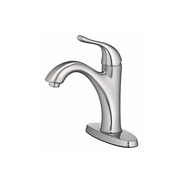 HomePointe, PVD Chrome Finish, Single Lever Handle Lavatory Faucet, With Plastic Pop Up, Brass Waterways, Metal Housing With Finish Matching Underbody, Ceramic Disc Cartridge, 4 Center Distance, Copper Inlets, Watersense Certified, Meets California AB1953 No Lead Standard