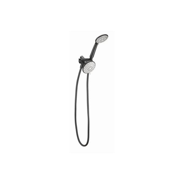 HomePointe, Matte Black, 5 Spray Settings, Fixed Hand Held Shower Head, Wall Mount, With Plastic Ball Joint, 59Gray PVC Hose, 2 Way Diverter, Teflon Tape, 18 GPM