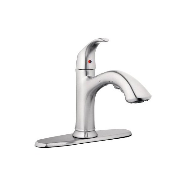 HomePointe, Brushed Nickel Finish, Single Loop Handle Pull Out Kitchen Faucet, 18 GPM, Ceramic Disc Cartridge, 1 Or 3 Hole Installation, Brass Waterway, Braided Black Nylon Hose, Replacement Single Handle Ceramic Cartridge, Meets California AB1953 No Lead Standard