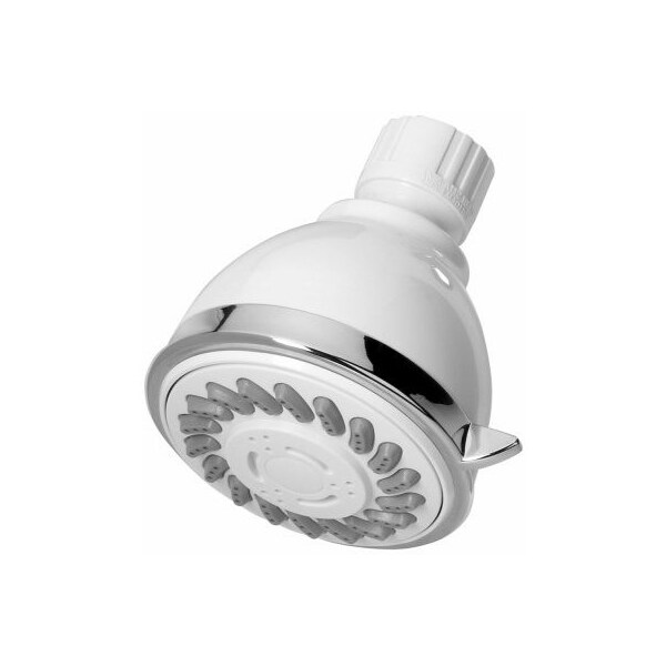 HomePointe, White Finish, Adjustable, Plastic, Fixed Wall Shower Head, 3 Diameter, 18 GPM Maximum Flow, 3 Settings, Plastic Ball Joint