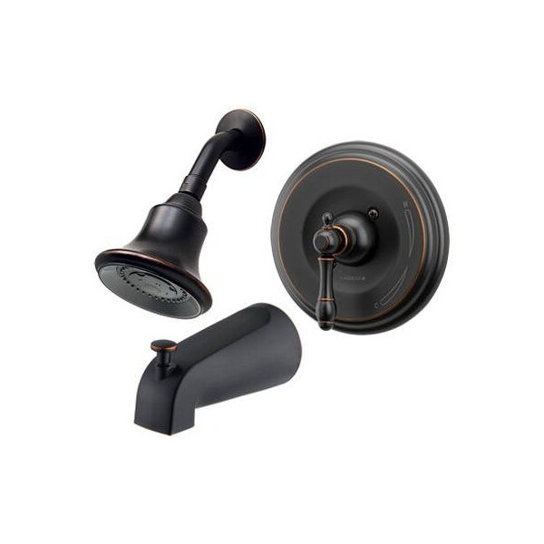 HomePointe, Brushed Bronze Finish, Single Metal Vintage Lever Handle Pressure Balancing Tub Shower Faucet, 18 GPM, With Integral Stops, High Temperature Limit Stop, Brass Waterway, Brass Ball Self Cleaning Showerhead Back To Back Installation, 12 Threaded Inlets