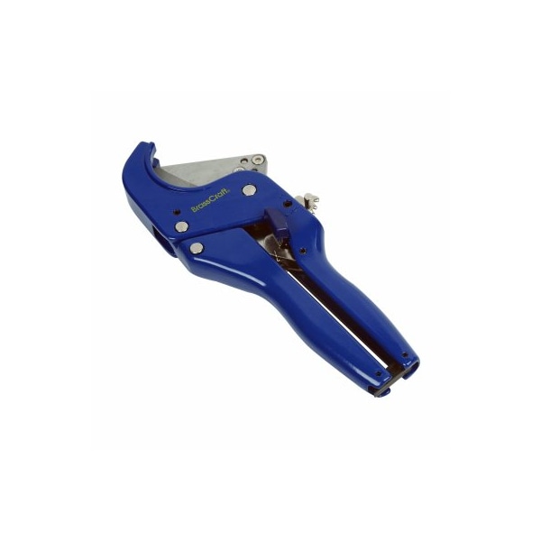 PVC Cutter. Cuts Plastic Cpvc Pvc Abs Pex Vinyl And Rubber Tubing. Ratchet Cutting Action Allows For 1-Handed Operation. Quick Release Blade Re-Set. Designed to cut up to 1-1/4 nominal PVC or roughly 1-5/8OD.