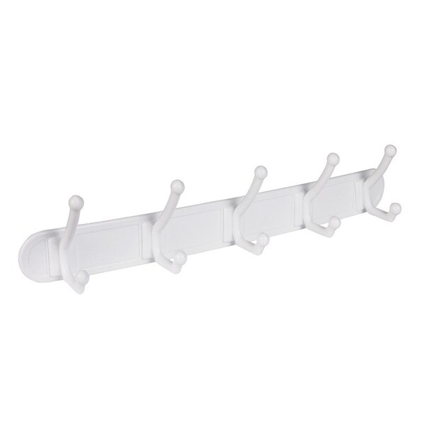 Double pronged hooks. Mounts on any surface. Five hook design. Easy to install. no tools necessary.